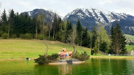 Zwischendurch, in der judofreien Zeit, nutzten Salzburgs Judoka, bei nicht wirklich sommerlichen Temperaturen, eine Erfrischung in den kühlen Fluten im Natur-Badesee des Jugenhotels Schlosshof.